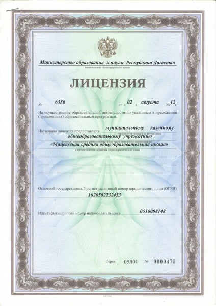 | Полное наименование образовательной организации* | Муниципальное казенное общеобразовательное учреждение Мацеевская средняя общеобразовательная школа |